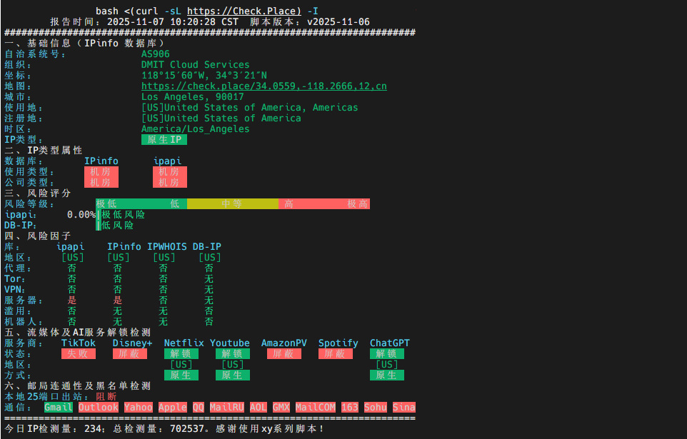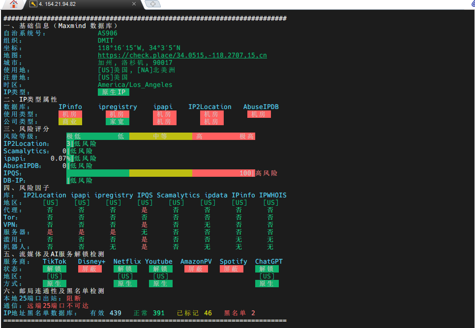 DMIT的pro的IP质量一直这么差吗?IPQS直接100分高风险啊,解锁也一般