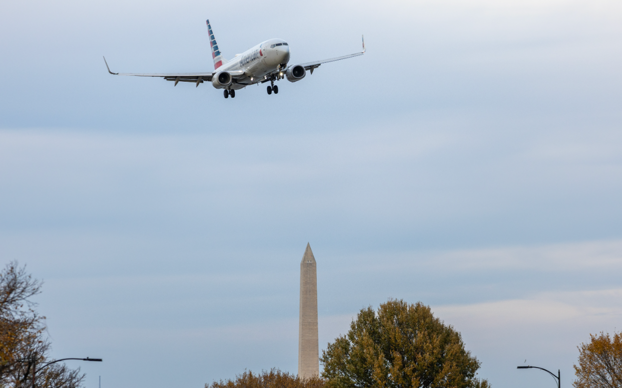 ▲一架正在飞行的美国航空公司飞机。图/新华社