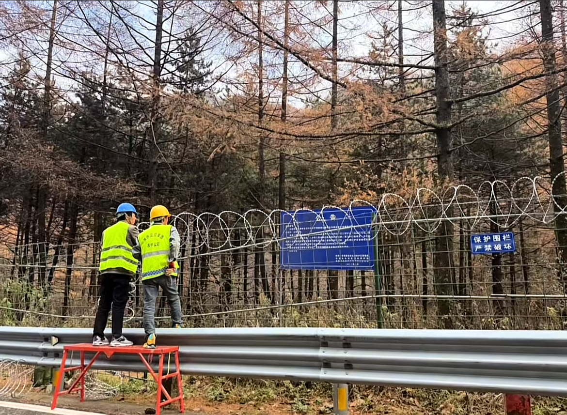 长安区秦岭保护局的工作人员告诉记者,那块属于秦岭的核心保护区,他们最近在那试点,范围为200米。原来那是一个河道,旁边就有铁网,他们在顶部加了类似铁蒺藜的东西,主要还是阻止违规穿越的事情。不过近期他们收到群众反映,这个东西可能对动物和人员有安全隐患,于是他们调整了方案,这块都取掉了。