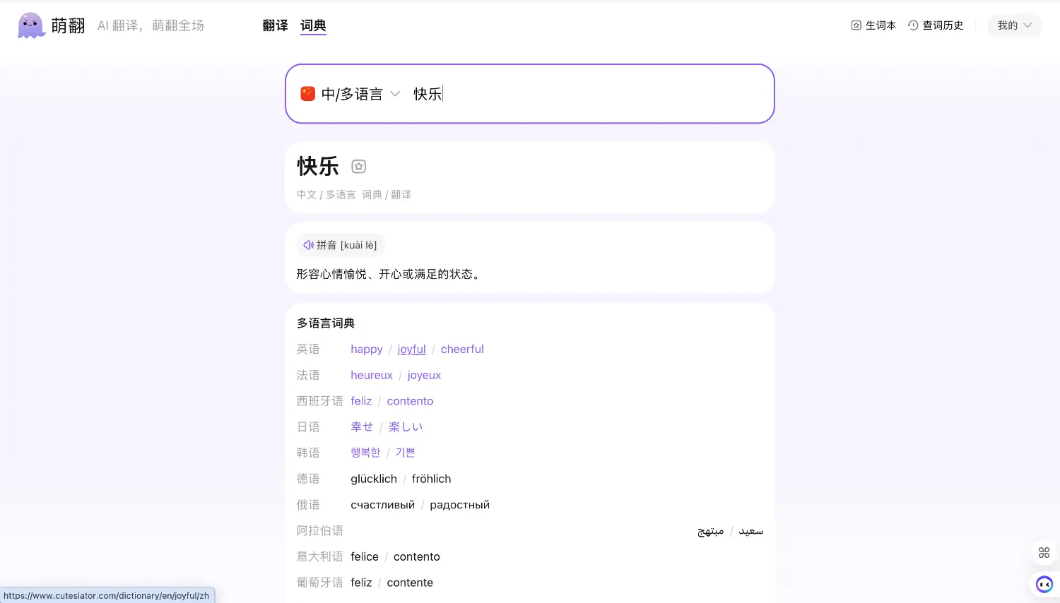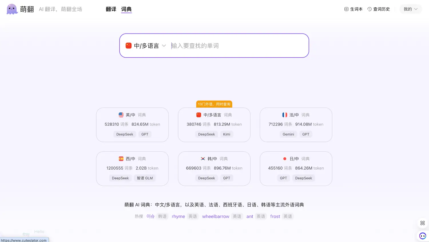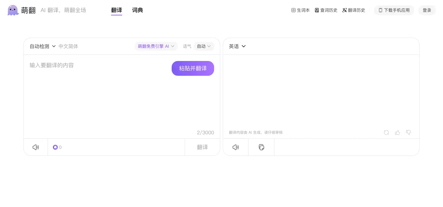 萌翻是世界上首款针对多语言学习和使用者的 AI 综合应用,目前主打翻译和查词两个功能。