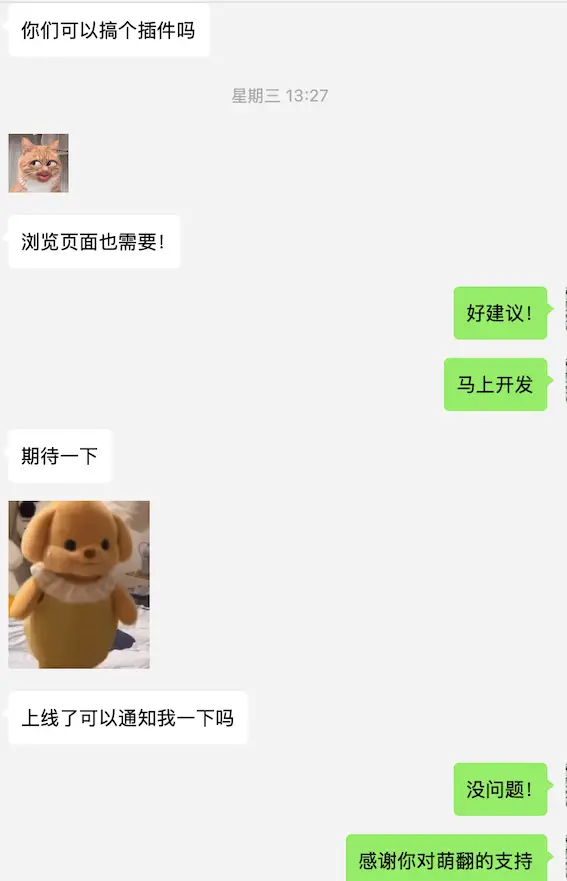 下面是一些萌翻用户对我们的鼓励,我们会持续迭代下去,努力把这款小小的 AI 翻译词典做到极致!