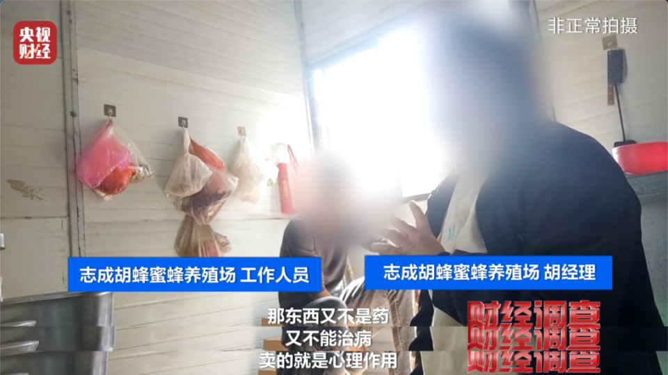 养殖场的负责人胡经理告诉记者,他们的主要业务是繁殖培育蜂王进行销售,属于虎头蜂养殖产业的上游。工作人员介绍,市场上销售的号称治疗各种疑难杂症的虎头蜂酒都是虚假宣传。