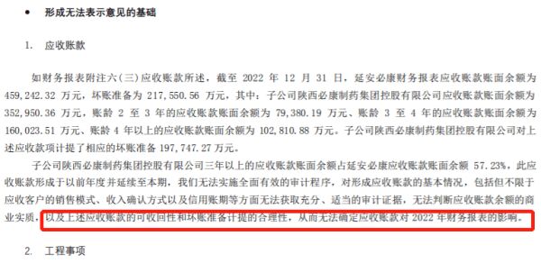 而*ST必康2022年财报被出具无法表示意见的审计报告,与上一年度的部分事项相同。审计机构提示,不对*ST必康2022年财报发表意见,主要涉及*ST必康的应收账款、工程事项。