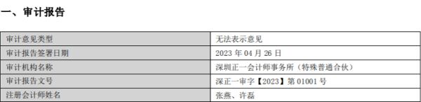2023年4月29日,*ST银河发布2022年年报显示,审计机构出具了无法表示意见的审计报告。同时,公司截至2022年12月31日的净资产为负值。
