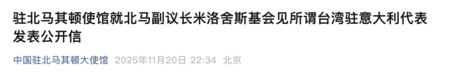 驻北马其顿使馆就北马副议长米洛舍斯基会见所谓台湾驻意大利代表发表公开信