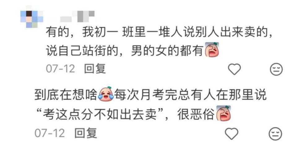 刚刚升入初中的孩子,在得知考试成绩时,无意识地嘟囔“考这么点分数不如出去站街”。