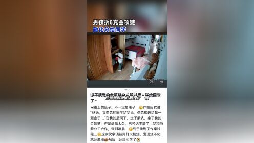 11月28日,山东枣庄的孙女士发文称8岁的儿子将自己的金项链拆分送给同学。