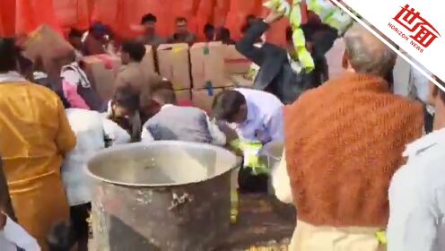 11月27日,印度北方邦一场集体婚礼上宾客蜂拥在小吃摊争抢薯片等食品的画面曝光。事发25日,画面显示多人推搡并抢夺薯片,现场一片混乱。