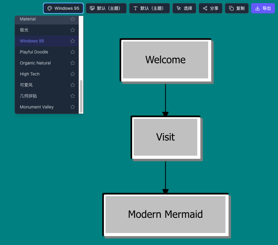 增加了很多新主题,也支持主题收藏功能,可以来玩玩,流程图样式编辑功能也进行了加强