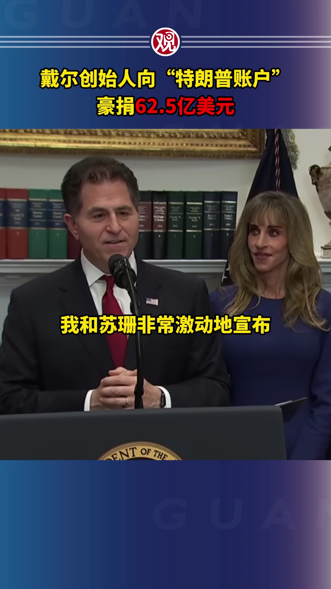 报道称,戴尔夫妇的62.5亿美元捐款将首先交给美国财政部,再被用于给总计2500万名儿童的“特朗普账户”注入250美元(约合人民币1767元),这些儿童的区域家庭收入需要中位数低于15万美元。戴尔夫妇表示希望他们的捐赠能够鼓励美国家庭认领这些账户,并向其中存入更多资金,这样账户就能随着股市的增长而不断增值。不过,根据美国官方的时间表,该账户目前还尚未正式开通。