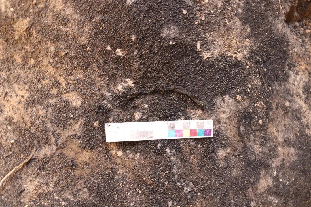 判断这些遗迹的性质,考古人员依据了多组关键发现。在已清理出的17座形制规整的袋状坑窖中,有4座的底部发现了大量碳化的粟、黍颗粒。尤为重要的是,在其中一座坑窖内,出土了一件罕见的黍秸秆编织物,其形态为推断这些坑窖的储粮用途提供了有力线索。结合其规整的深窖形制及坑口外专用的“操作间”,这些遗迹被推断为用于集中储粮的仓窖。