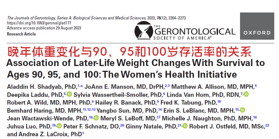 ④Association of Later-Life Weight Changes With Survival to Ages 90, 95, and 100: The Women’s Health Initiative. The Journals Of Gerontology: Series A. doi: 10.1093/gerona/glad177