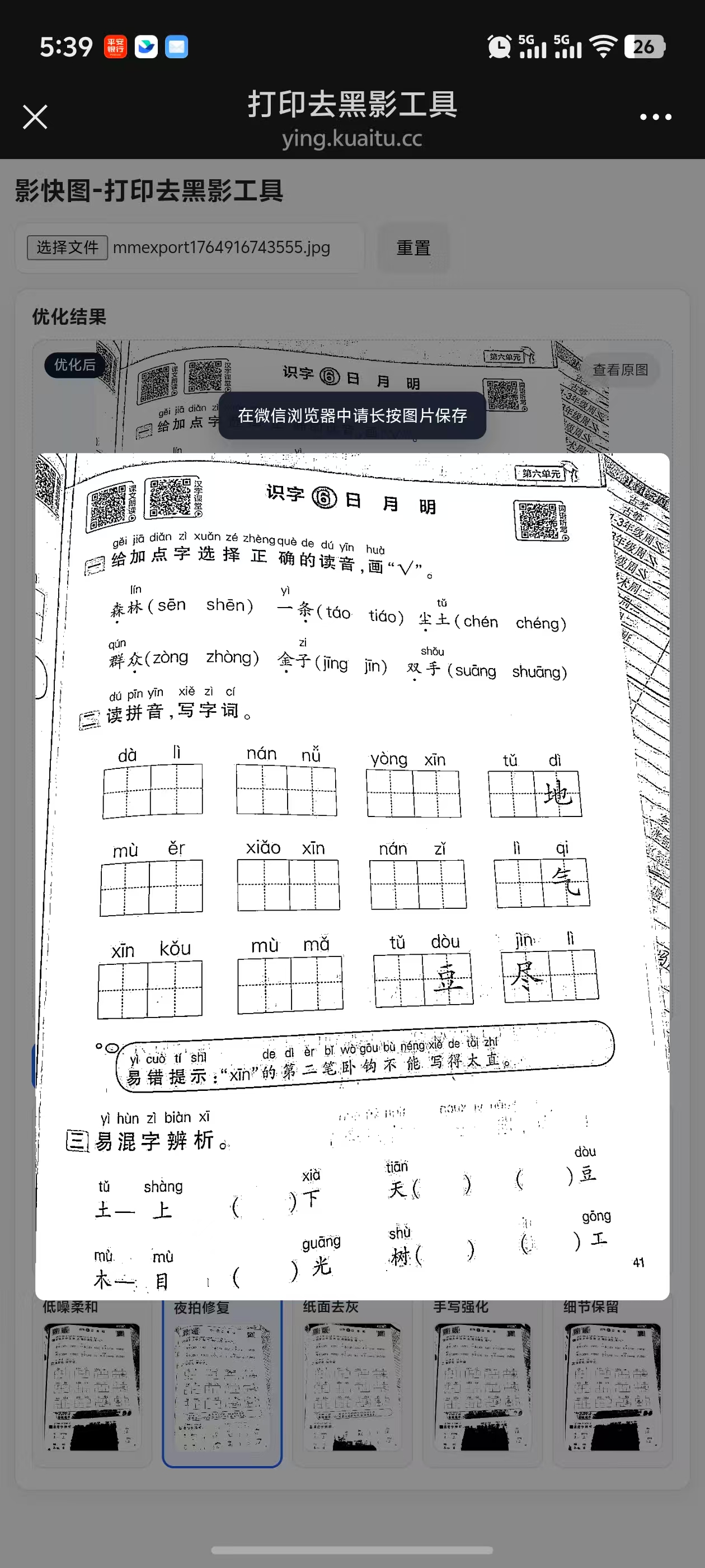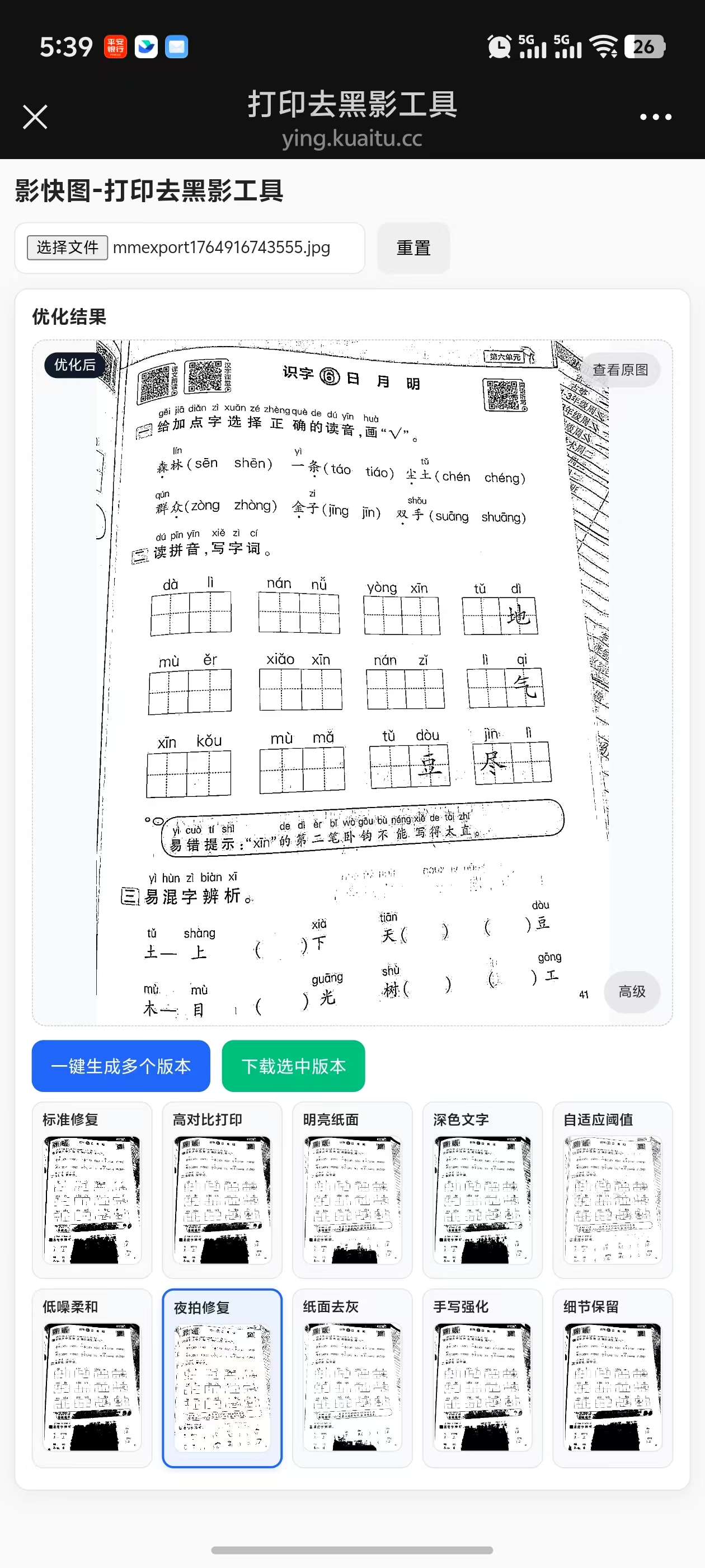 最近在老家,孩子每天写作业,妈妈打印出来的作业都是黑漆漆的,手机扫描又不方便,于是搞了个小工具。
