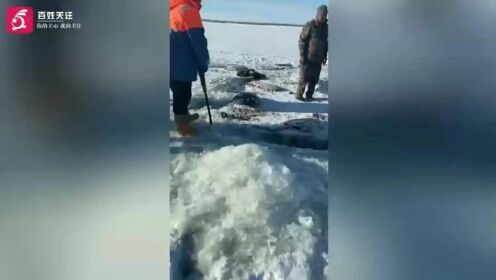 目击者称,马匹扎堆喝水冰面碎裂落水,马主人两天后才发现,在现场组织人员破冰打捞。