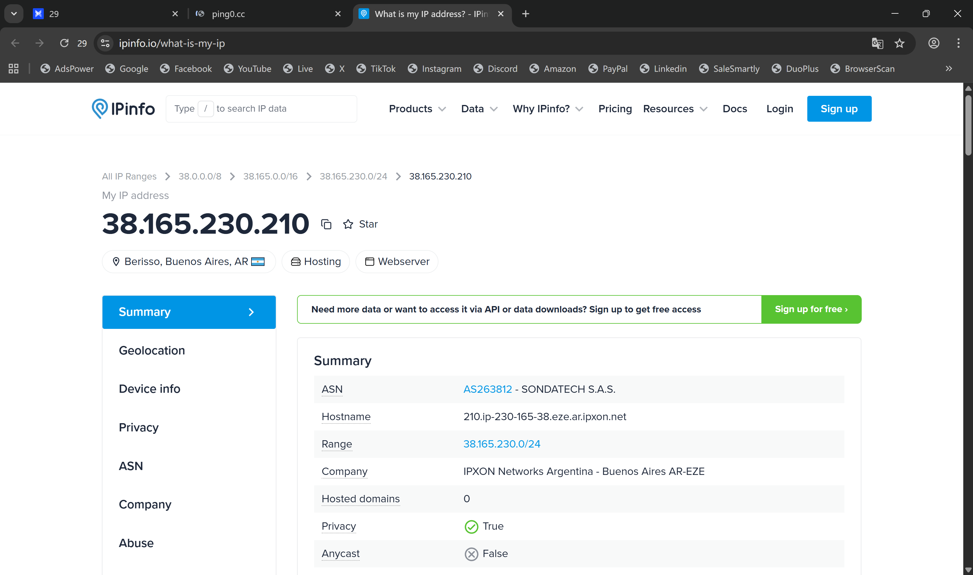 在打开的浏览器窗口中,访问:[https://ipinfo.io/](https://ipinfo.io/)