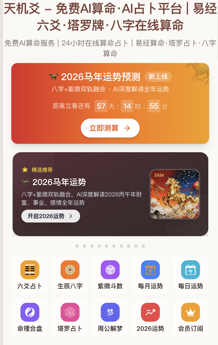 做了一个在线算命 / 占卜工具站,刚上线「 2026 运势」功能,送大家 2000 积分兑换码