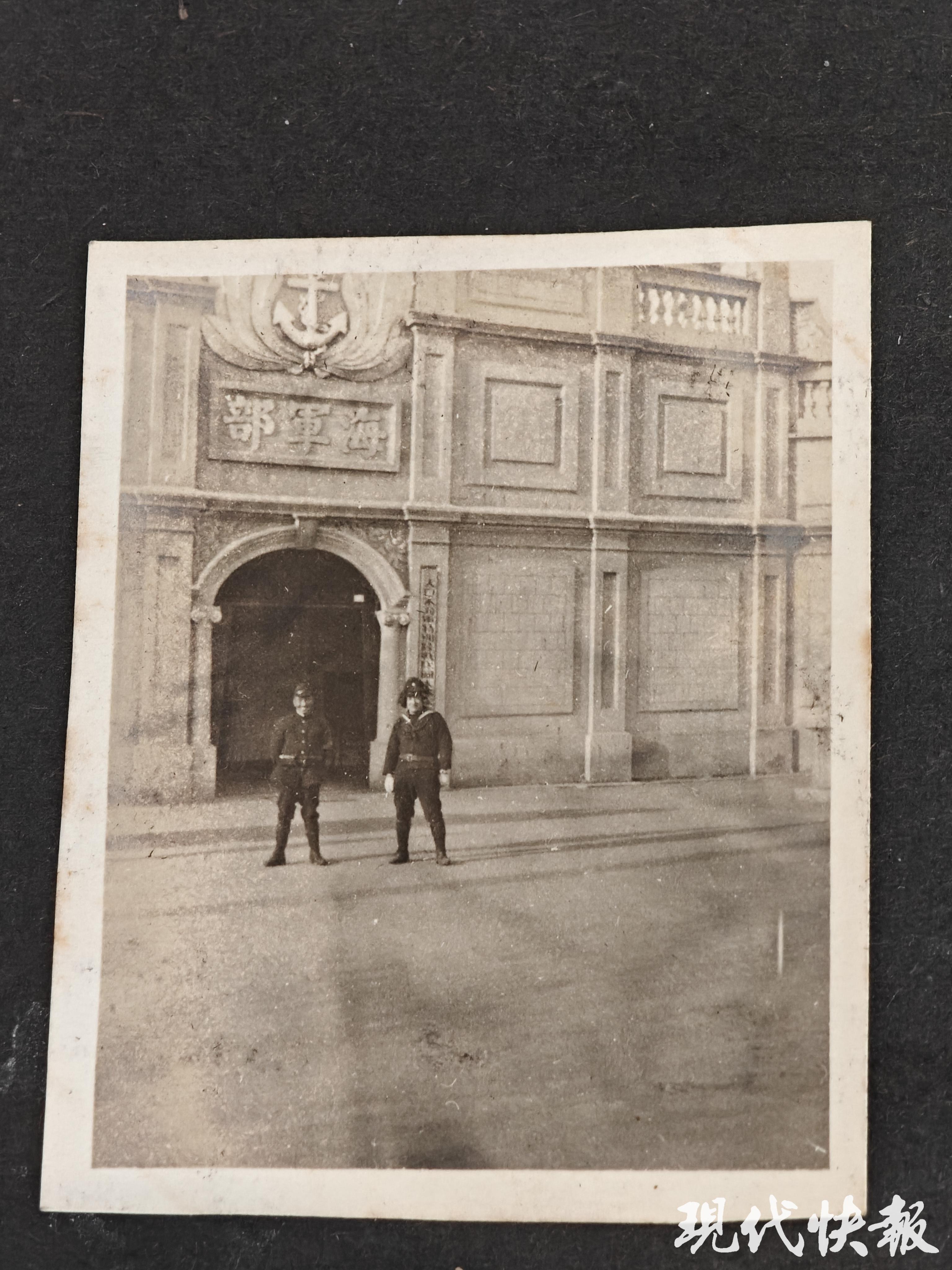 舰队旗舰“安宅”号水兵青柳藏次的个人相册,封面写有他的姓名和“安宅”号字样,相册中有近50张照片。经考证,青柳藏次是日本海军二等机关兵曹,相册中有很多他个人的照片,此外还发现了1930年代“安宅”号的全景照。另一张日本海军在挹江门内民国海军部门口的合影,大门右侧挂有牌匾,上面写着“大日本海军特别陆战队……”等字样。