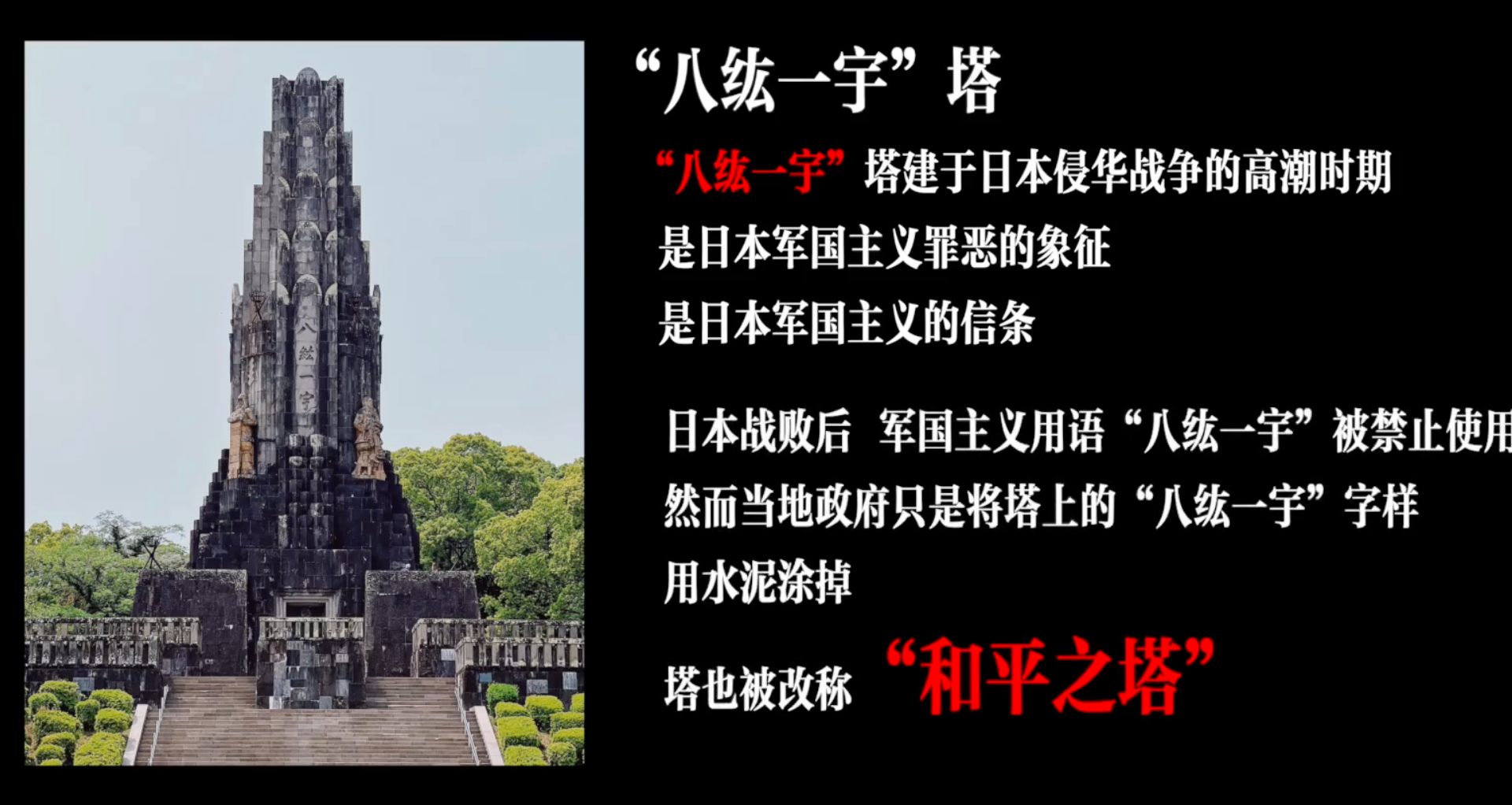 日本“八纮一宇”塔应当被拆除。二战中的日本,从被侵略的国家掳掠了超370块石头,建起了一座罪恶之塔。