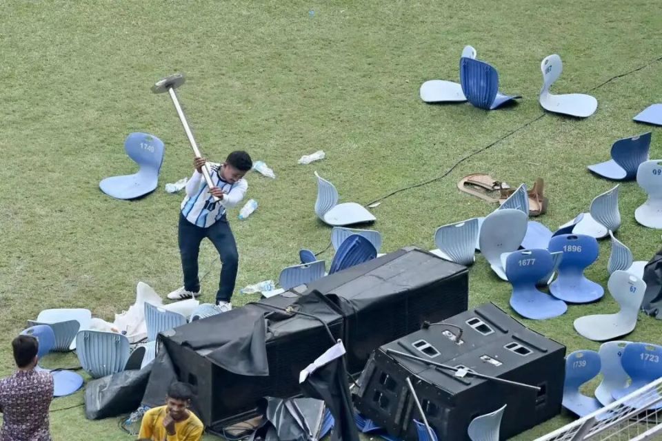 印度人很失望,球场开始骚动,梅西一走,更一发而不可收拾。