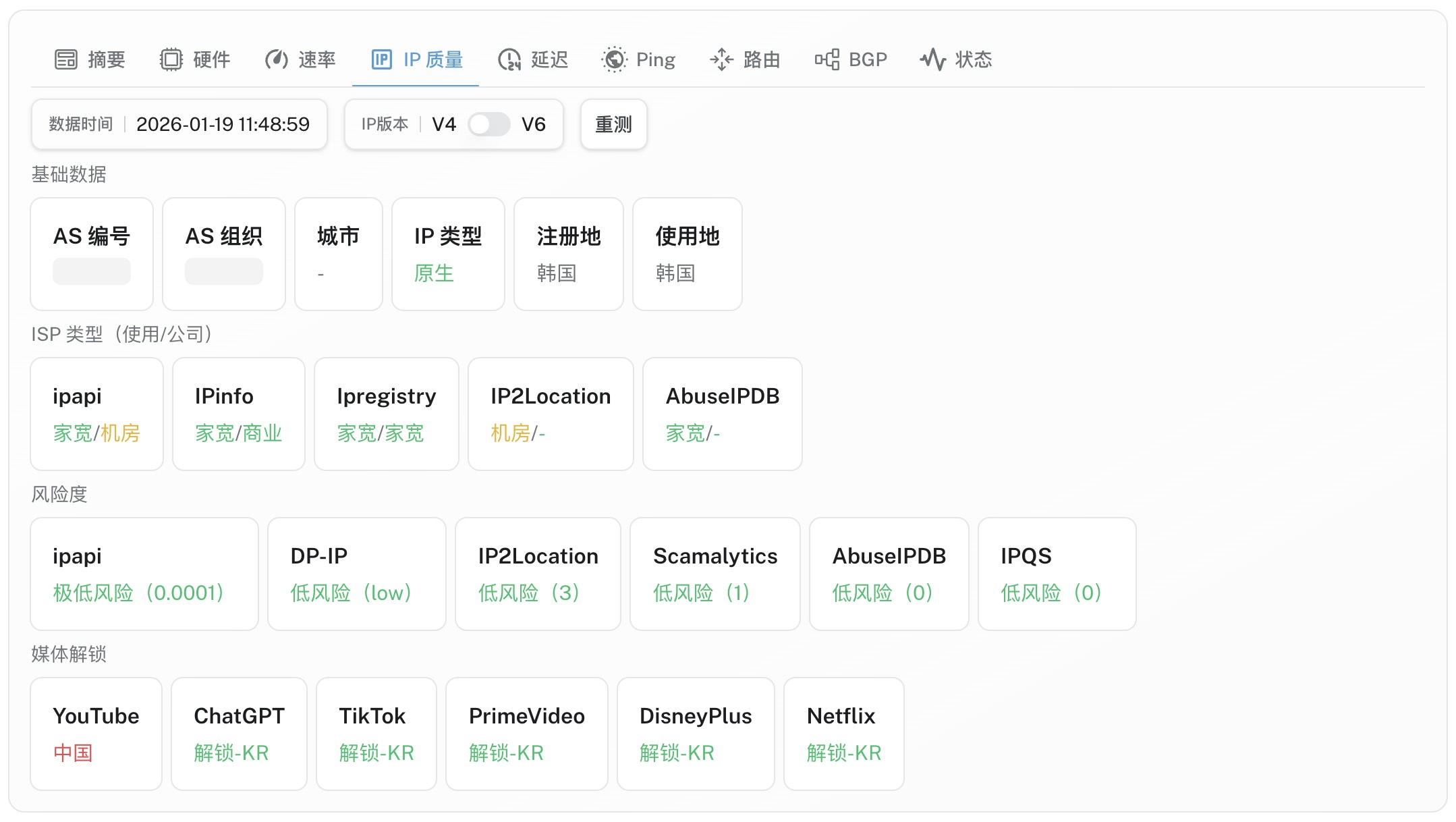 DigVPS 测评 - ZoroCloud(索隆云)新增韩国 BGP| VPS(原生双 ISP)详评数据。