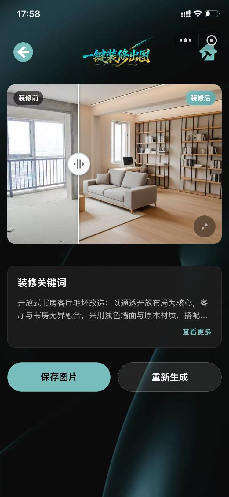 一张真正基于你户型和偏好的高清效果图,就出现了。他很真实,不会过于奢华,会很接近生活和装修后的效果图,你可以自己把想法输进去