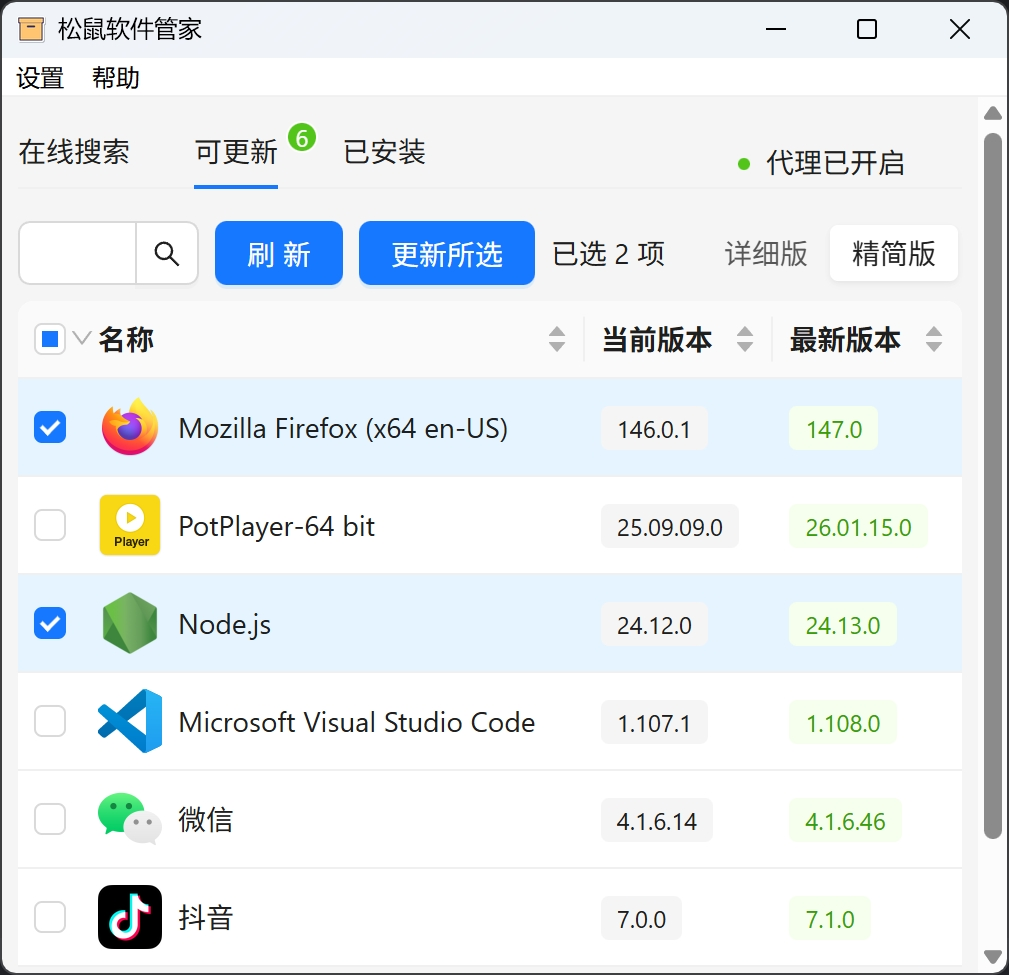 松鼠软件管家( guanManager ) 可视化管理和更新软件,基于 WinGet ✨主要功能 在线搜索、下载、安装、更新软件支持批量更新支持启用代理 🧩系统要求 Windows 10 及以上已安装 WinGet (一般系统会自带,也可自行安装) ⬇️下载 GitHub Releases: https://github.com/CrankZ/guan-manager/releases