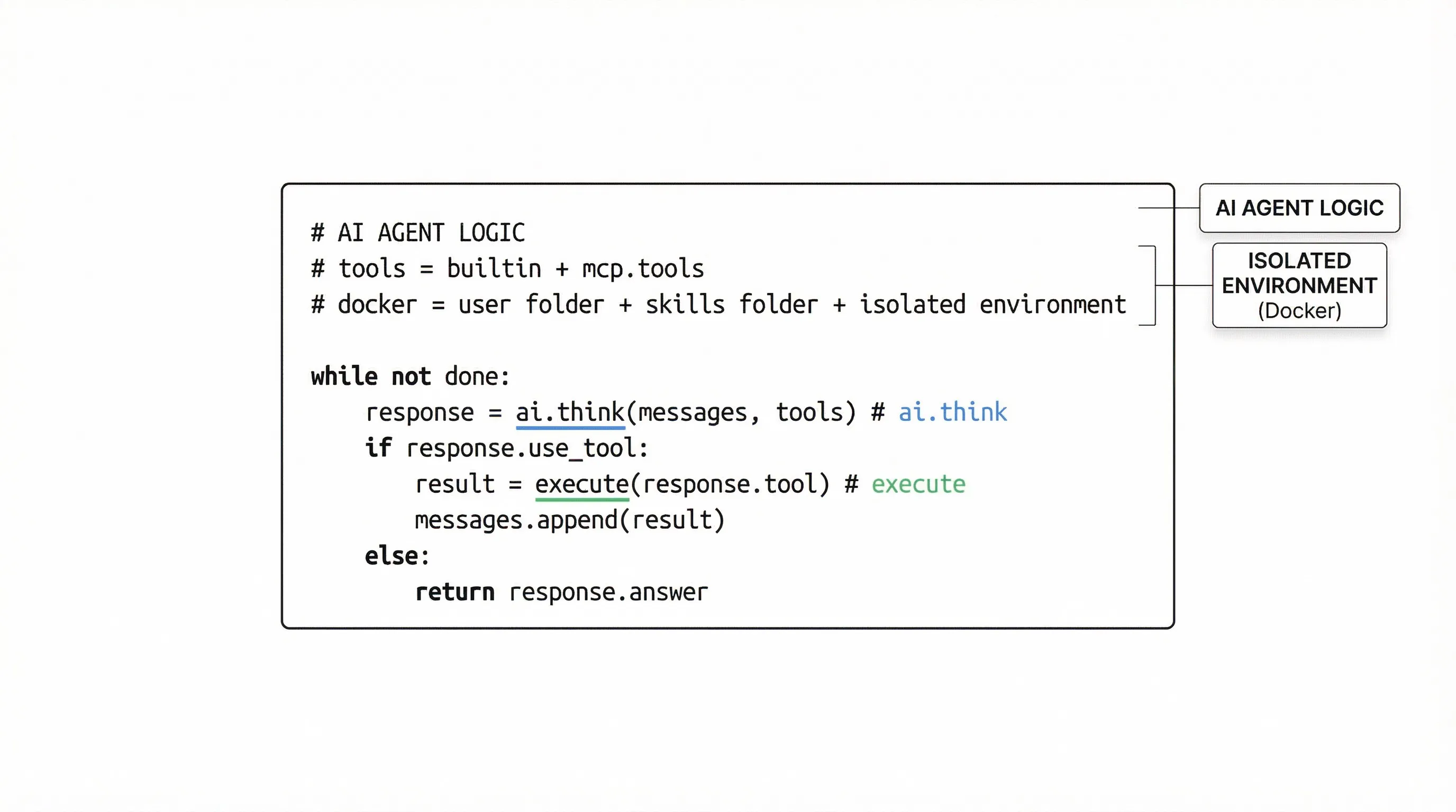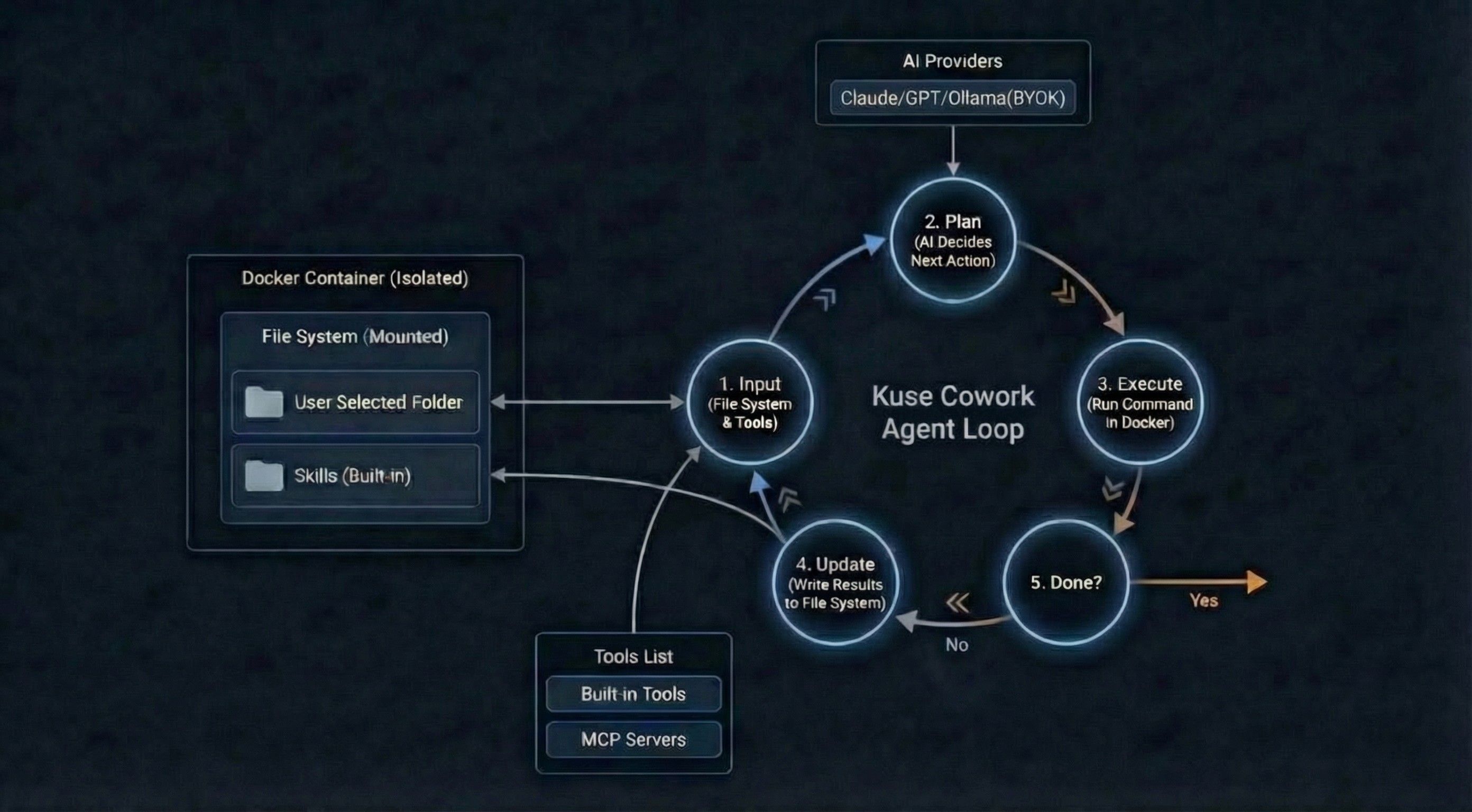 对非开发者来说,安全不是一个附加功能,而是基础前提。通过硬隔离( Docker ),以及对系统命令和网络调用的严格白名单,可以确保 Agent 始终是工具,而不是对系统的威胁。
