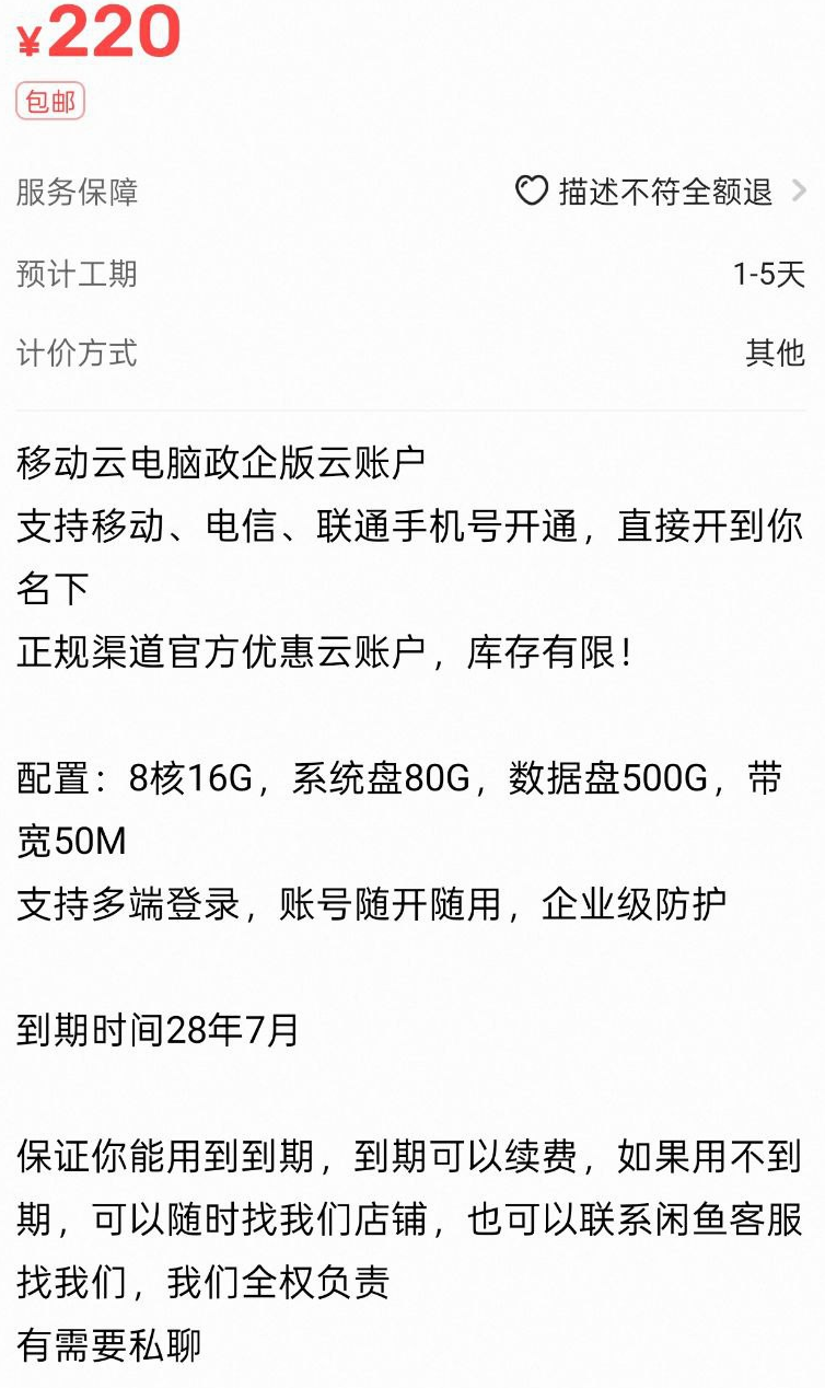 需要一台挂机用,搜下了移动最便宜,没看到月份的,基本1年起,有没有坑