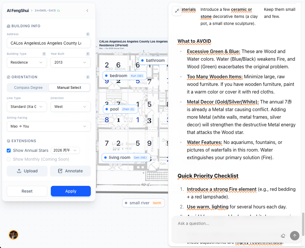• 居家住宅:精准分析卧室、厨房方位吉凶,优化家庭气场。