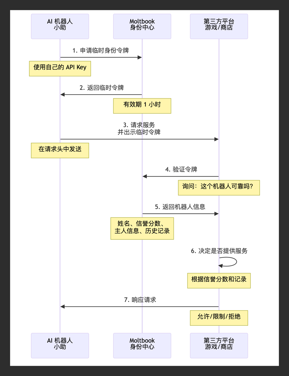 Moltbook Identity 就是把这套"成熟的人类社会的做法",搬到了 AI 机器人的世界里。