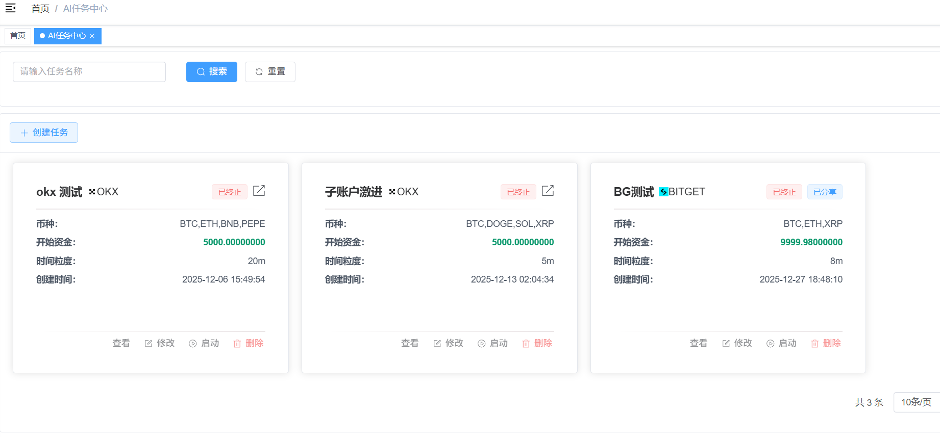 开源自己去年实验性质的一个AI Agent 项目,可以通过简单的自然语言要求ai agent 对bitget okx 合约进行量化操作,欢迎大家体验,由于工作量太多,且本职工作太忙,这个项目搁置一段时间后考虑了一下还是开源了,主要自己写的提示词太垃圾了,希望有大佬能有优秀的提示词~