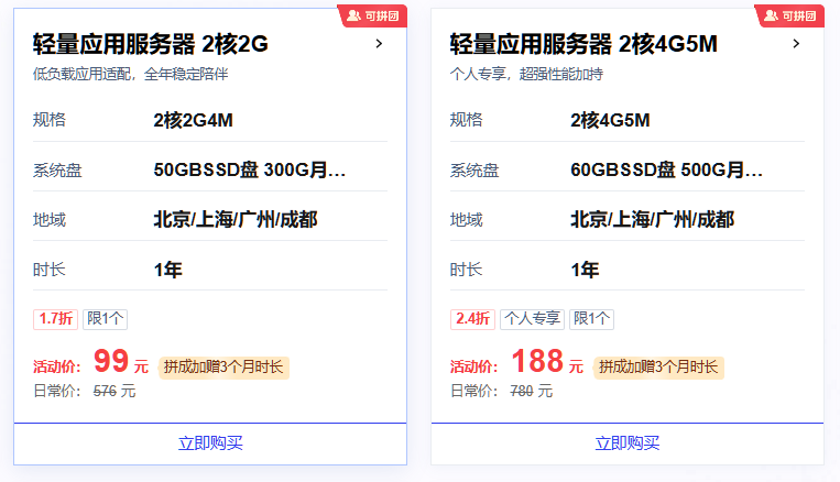 【腾讯轻量云拼团】我发起了一个99元团 拼成加赠3个月时长 点击前往:https://curl.qcloud.com/7vb8SFFD 99元/年 秒杀2C2G1T 能同价续费1年 活动地址:https://curl.qcloud.com/7vb8SFFD 99元能先下单一年,还能再99续一年【在活动页面点续订】 同价, 腾讯, 秒杀