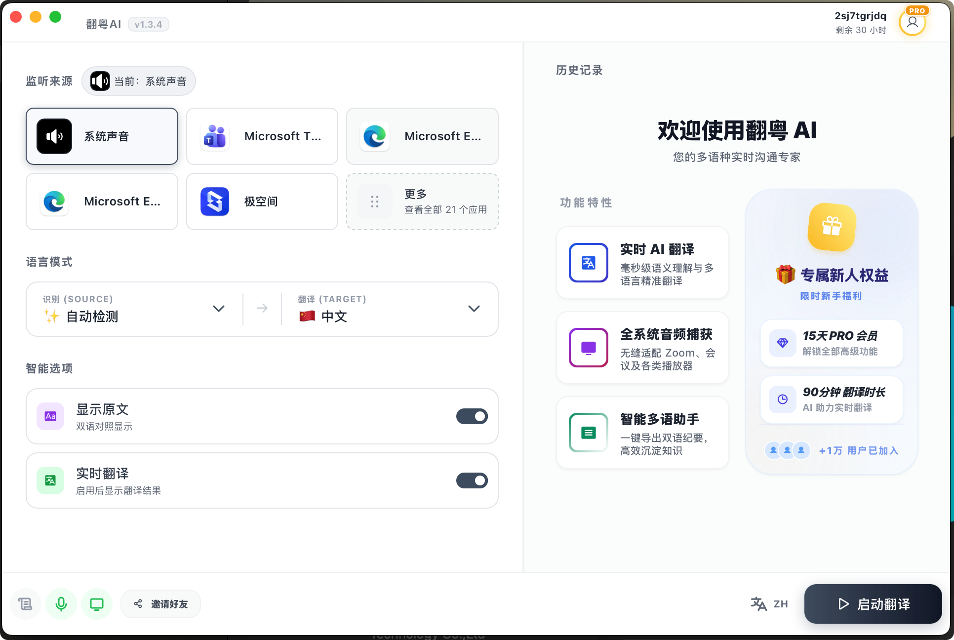 给刚注册的新用户默认塞了 15 天体验和 90 分钟的翻译时长,基本足够大家开几次会,或者看个视频体验一下效果了。