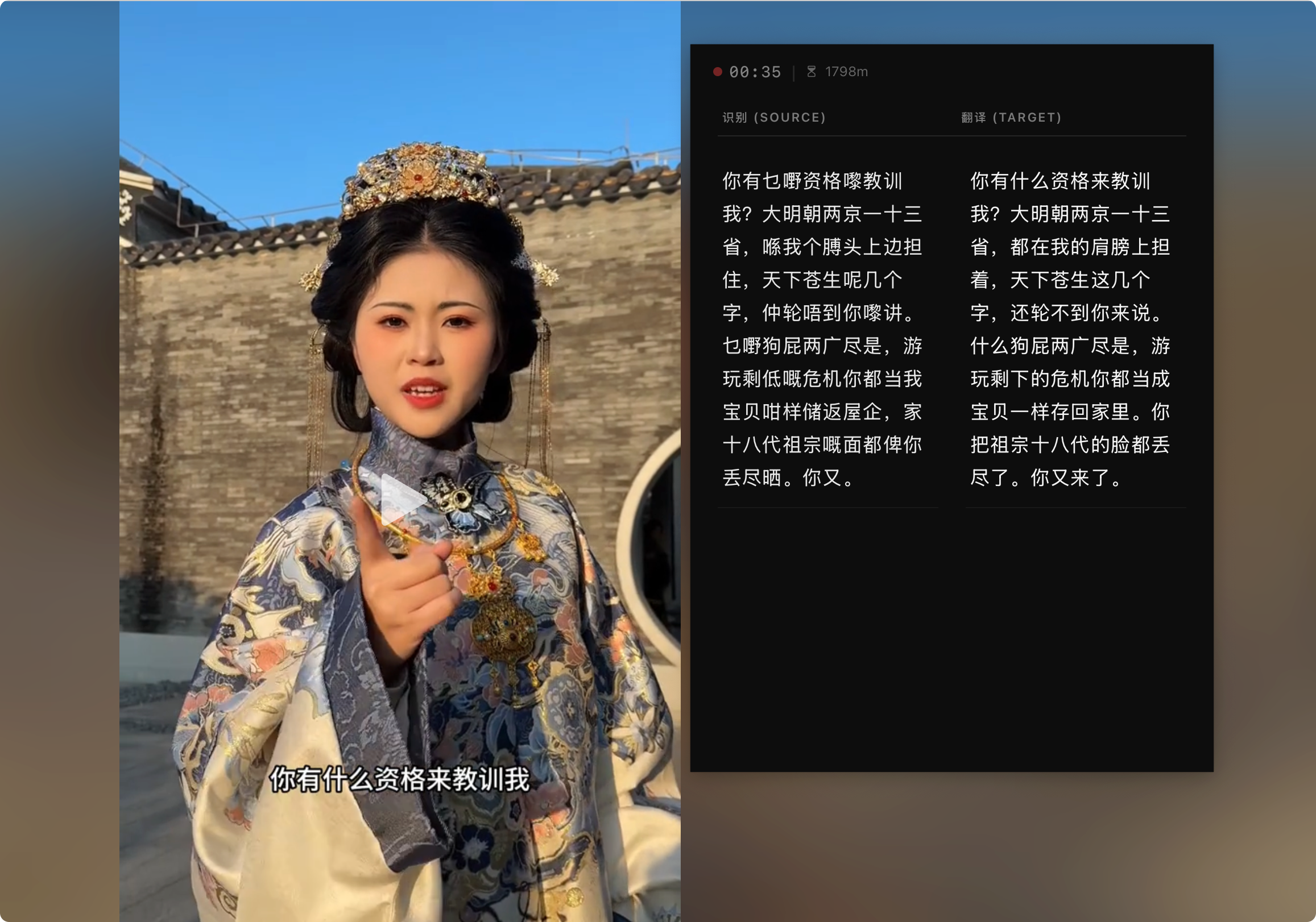 把电脑里播放的粤语语音,实时变成中文字幕。