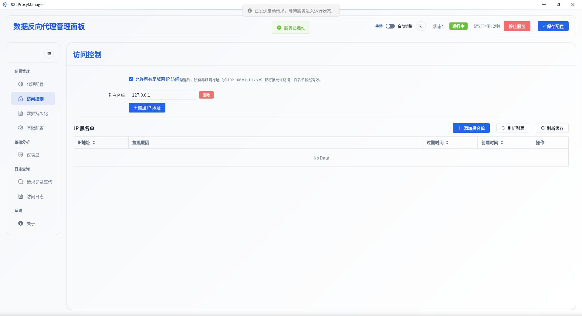 SSLProxyManager 基于 Tauri 2 + Rust,提供管理界面(前端:Vue 3 + Vite + Element Plus),用于配置与管理: