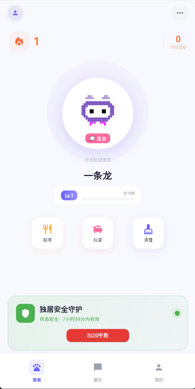 我发现有一部分年轻人喜欢在抖音续火花,想到这个能作为双向报平安的途径。 想做一个:面向独居青年/异地情侣的「 AI 萌宠 + 合养羁绊 + 安全搭子」 拒绝笨重工具感,主打轻治愈、零压力。 异地情侣合养 每天互动加好感,同时互相知道对方独居安全 独居青年 + 好友 / 家人 宠物是陪伴,也是隐形 “平安信号” 轻社交 不卷、不肝,只为情感和安全感存在,不做社交属性。 搞了个测试版的 单机 安卓版本 感兴趣可以试试,如果有想法可以一起做。 安装包 https://www.lanzoub.com/ilGNT3kd904f