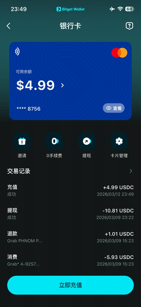 BIGET钱包赚币活动介绍是消费20U最高返20U ,开始以为人数超了随便刷了一次外卖5u, 实际活动人数超了也给返了,我消费了5U返了5U,准备把剩下15U也给薅了。