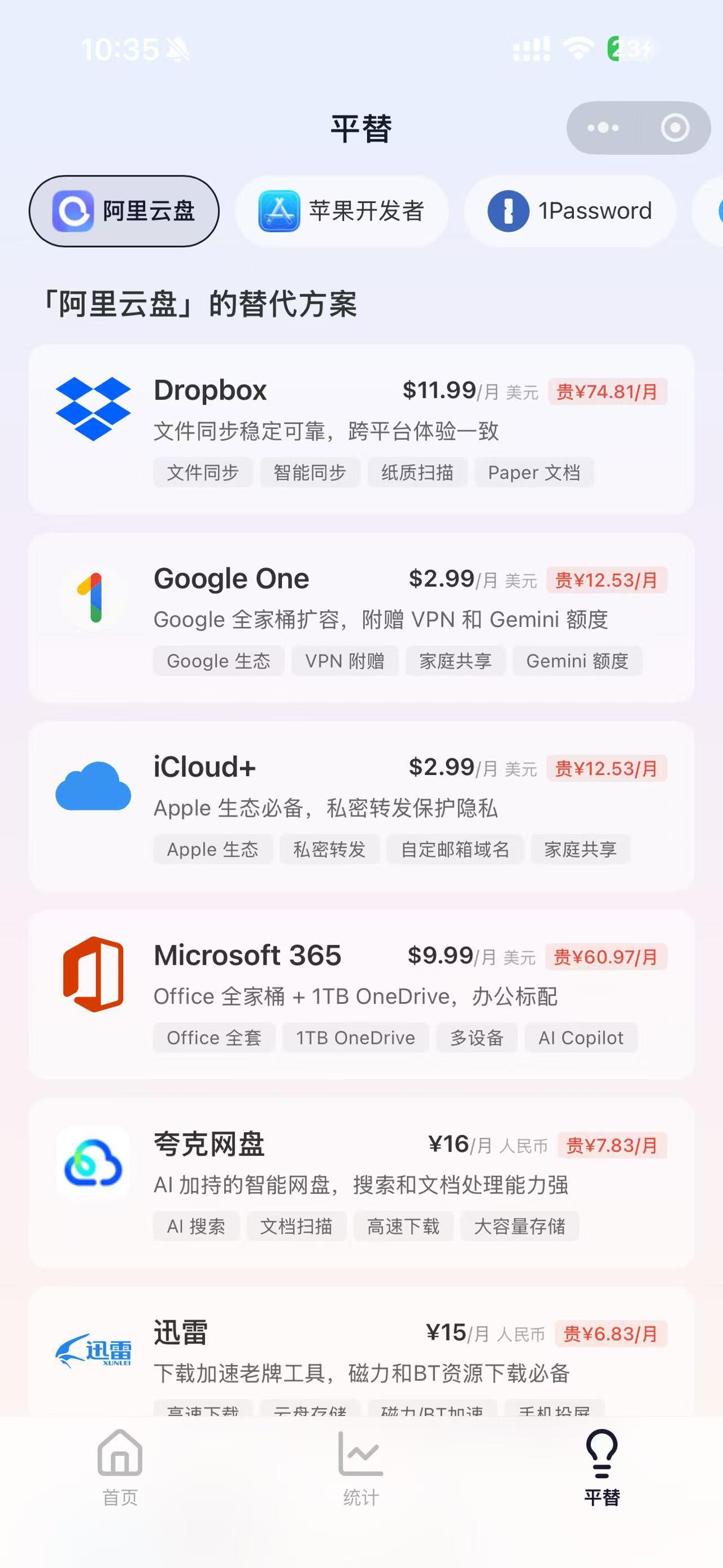 另外省流: 年费 10 元,买断 49.9 。因为有一定的服务器成本(数据云同步),所以只要有 20 个人付费就可以保证服务一直运行下去,免费用户会在 Launch 30 次后增加开屏广告(需要用户数,目前还没达到哈哈哈哈)(我保证如果运营不下去会增加订阅导出接口和退款,就算是我的一个失败的尝试 ^_^)。