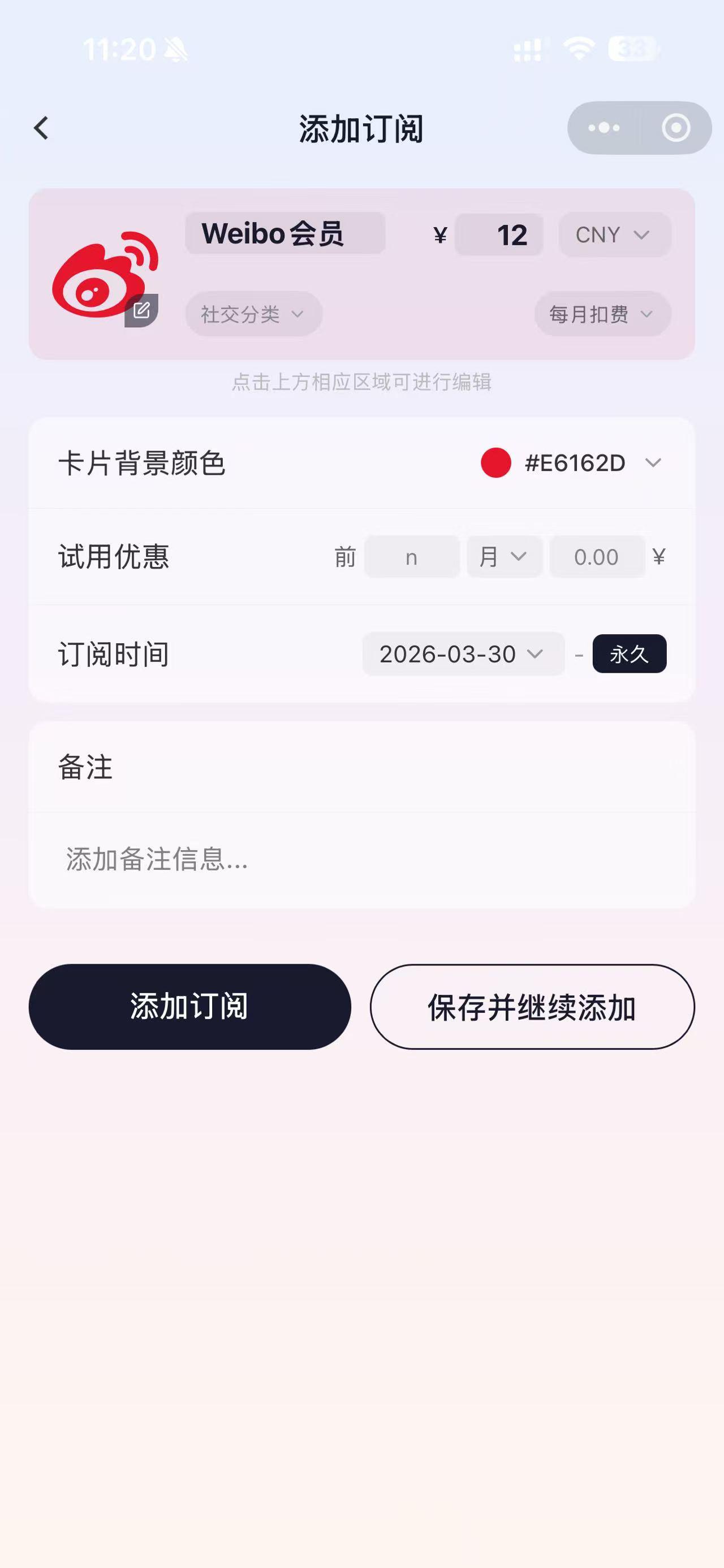 以及一些订阅软件的交互很差,或者需要输入的内容太多。我自己做的这款,打磨了一些细节,比如: