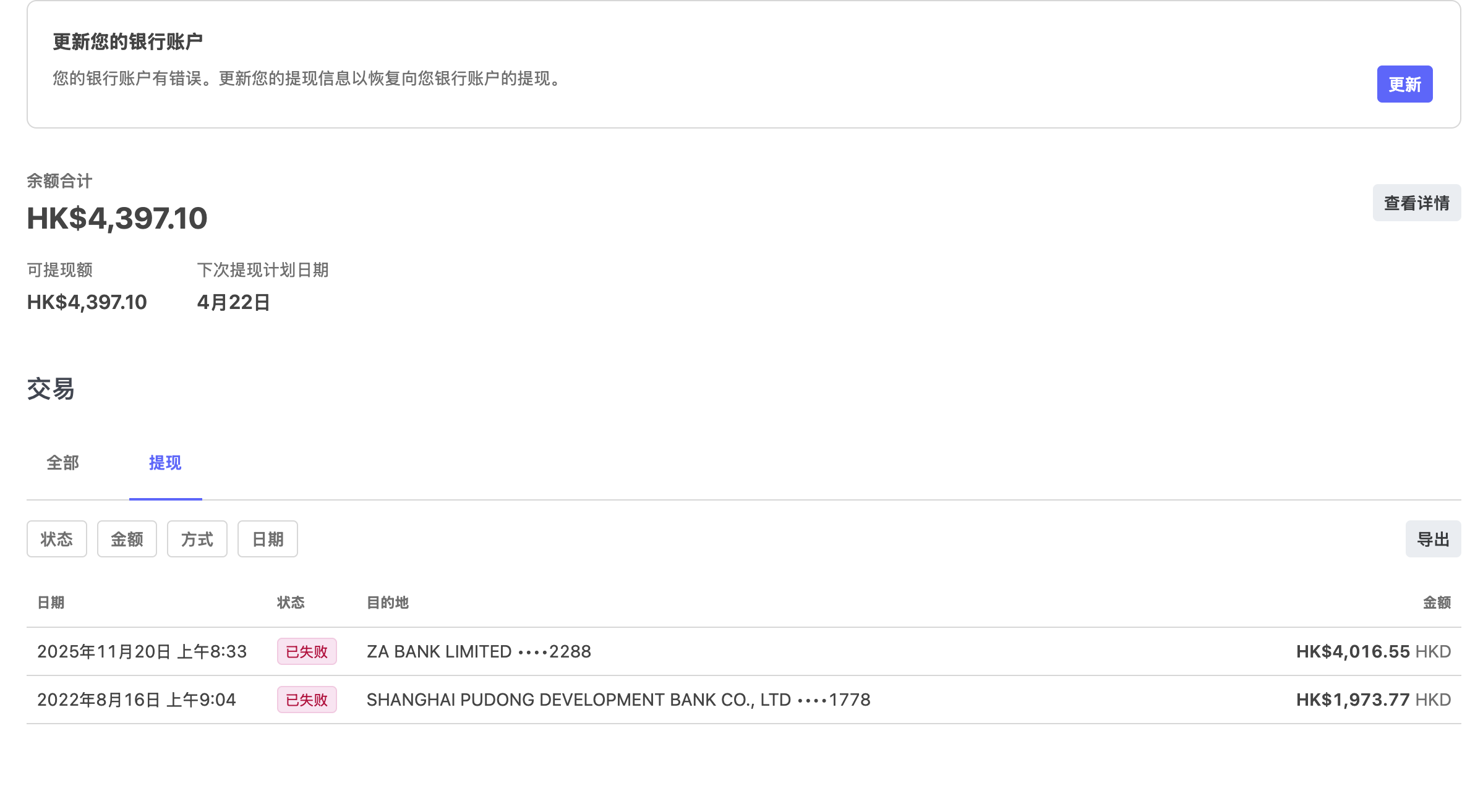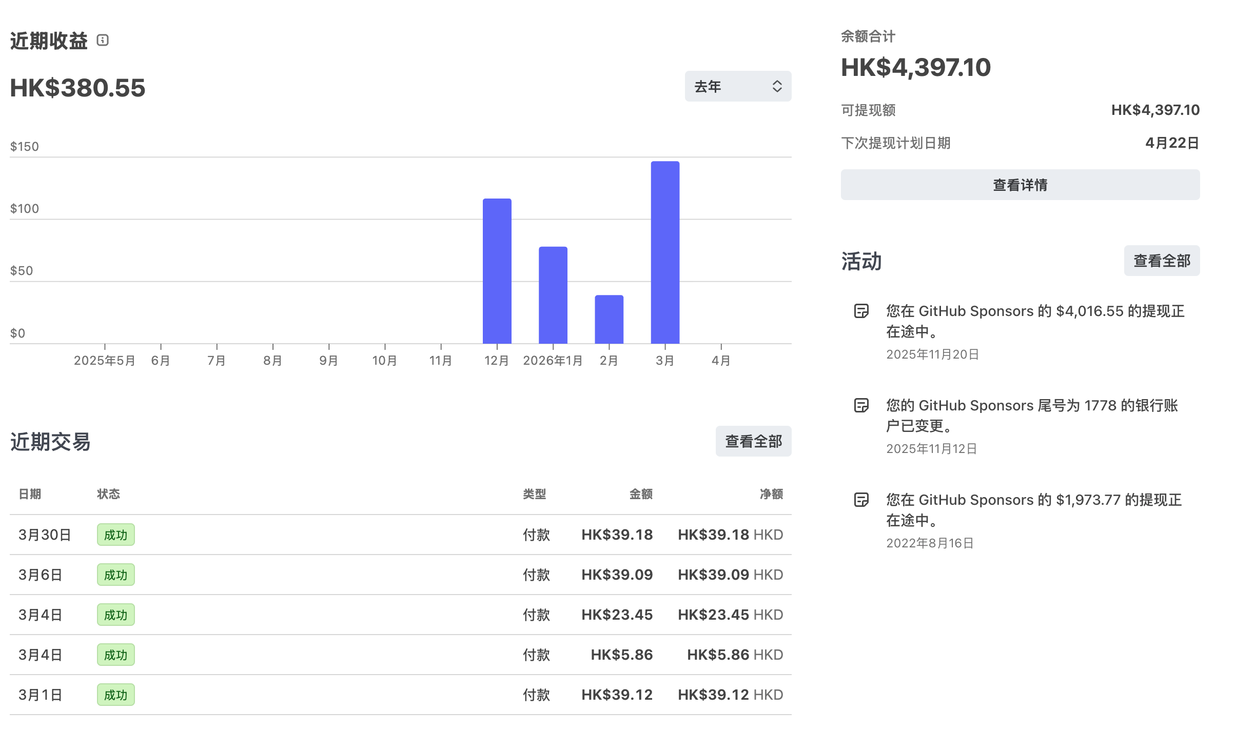 GitHub sponsors 慢慢积累的赞助有 5000 多了,试过几次想把它们提出来都失败了,试过用国内浦发银行,wise 和 ZA bank 的银行卡,都提不出来,有人有这方面经验吗 提现, 赞助, GitHub
