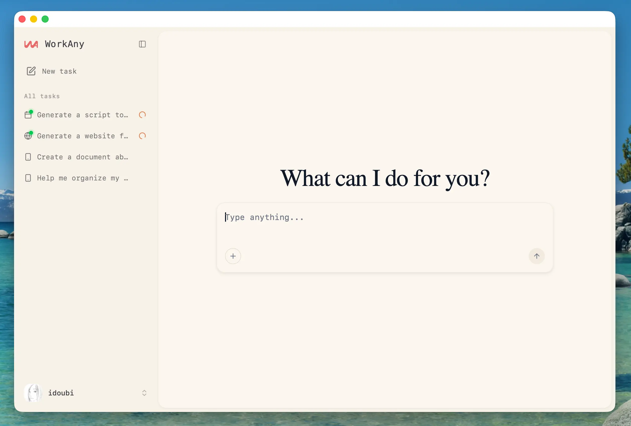 在 WorkAny 跑了几个任务,响应很快,效果很好。用自己的 SDK 实现了 Agent Runtime 功能,不再依赖 Claude Code ,哪里不爽改哪里。