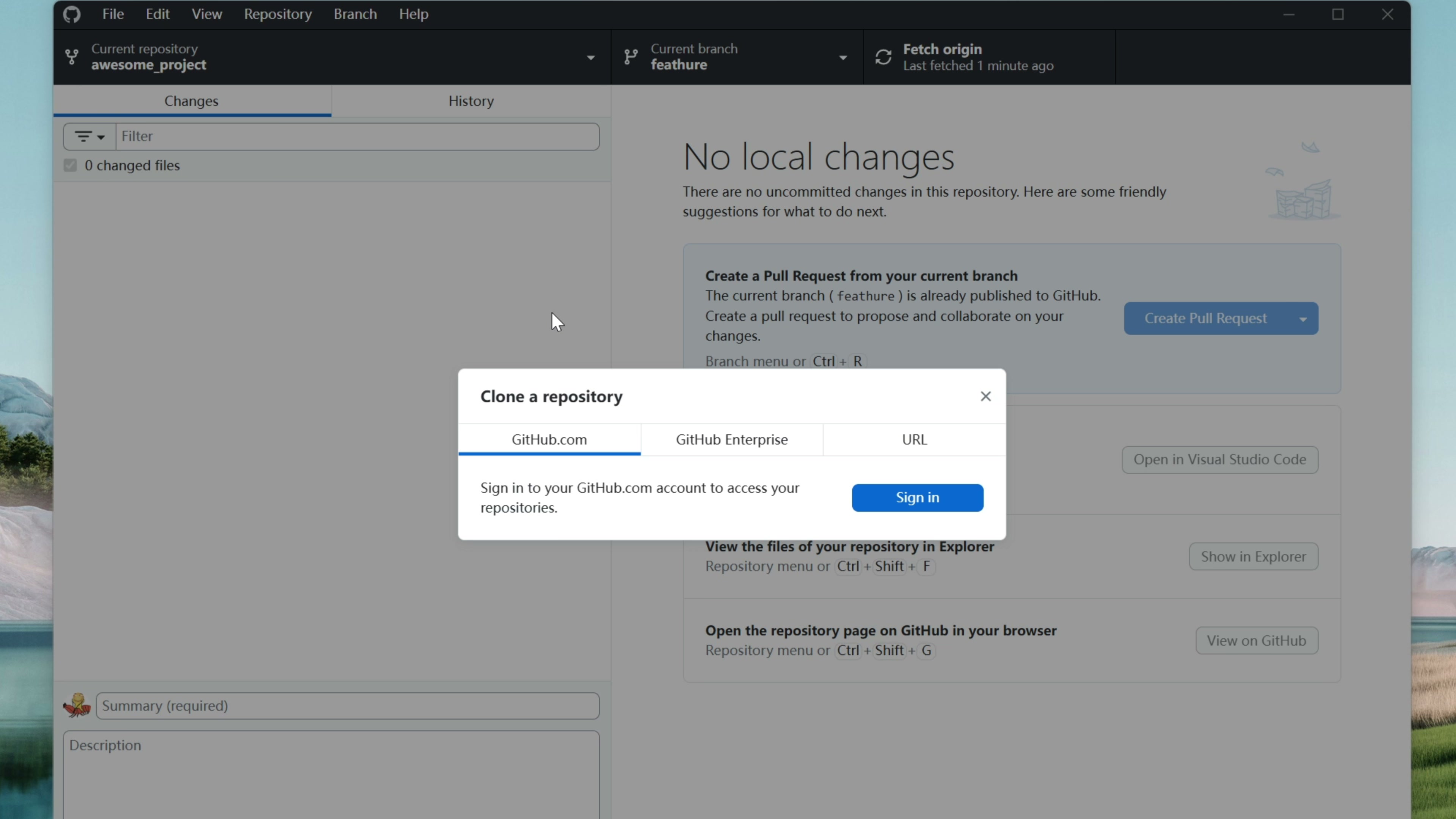 接下来我们要做的,就是把这个仓库克隆到电脑上面。接下来,我们下载一个 GitHub 的桌面客户端工具,就是 GitHub Desktop 。