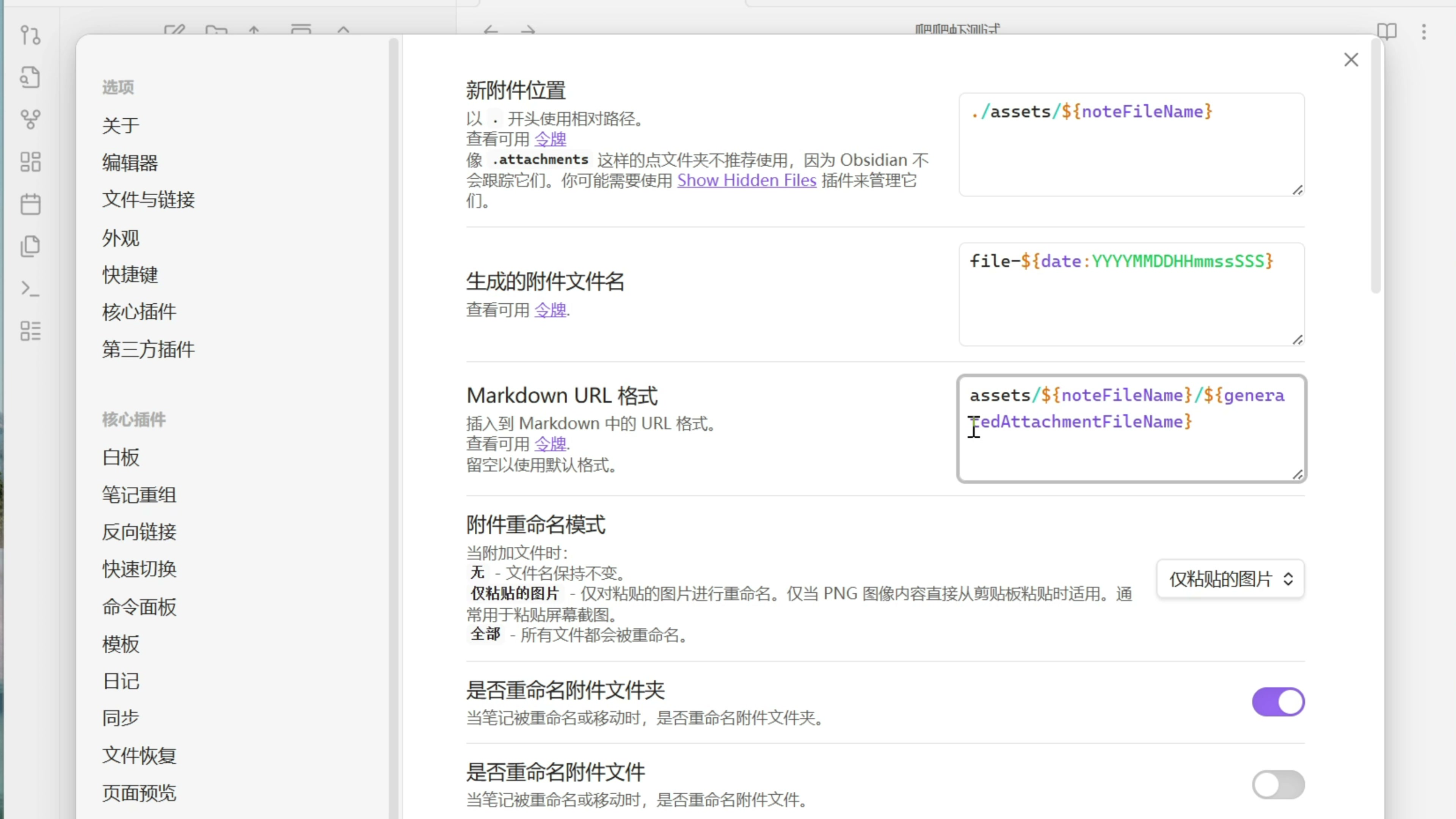 当我们对笔记进行重命名的时候,附件的子文件夹也进行了重命名,这里的图片链接也自动进行了更新。