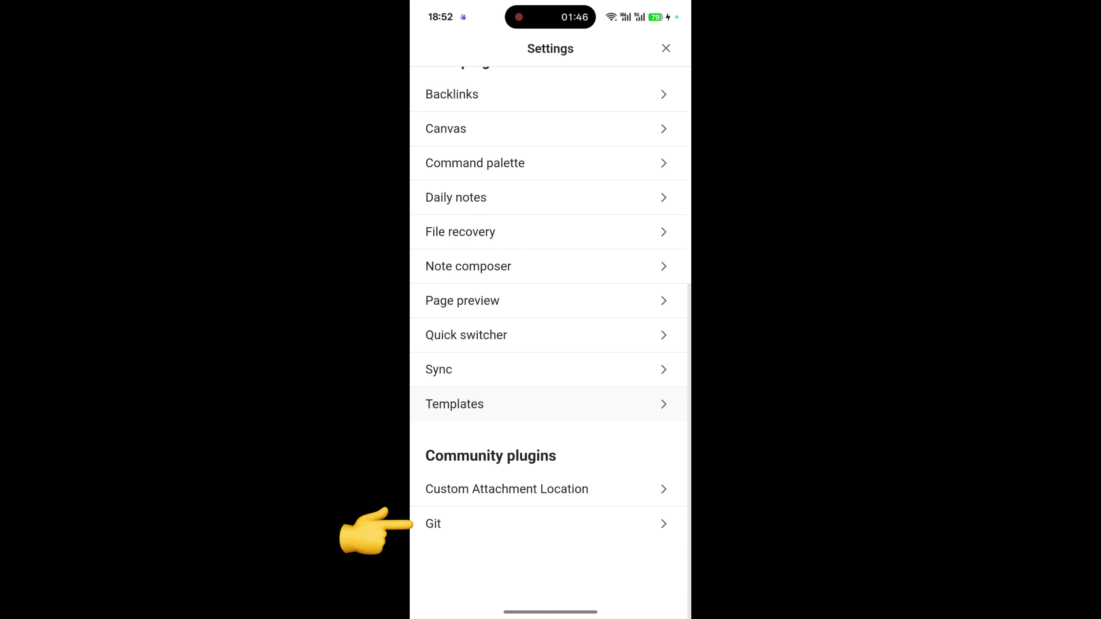 接下来我们配置云同步。点击左上角的按钮,然后右上角的设置,我们找到最下面的 Git 的设置。