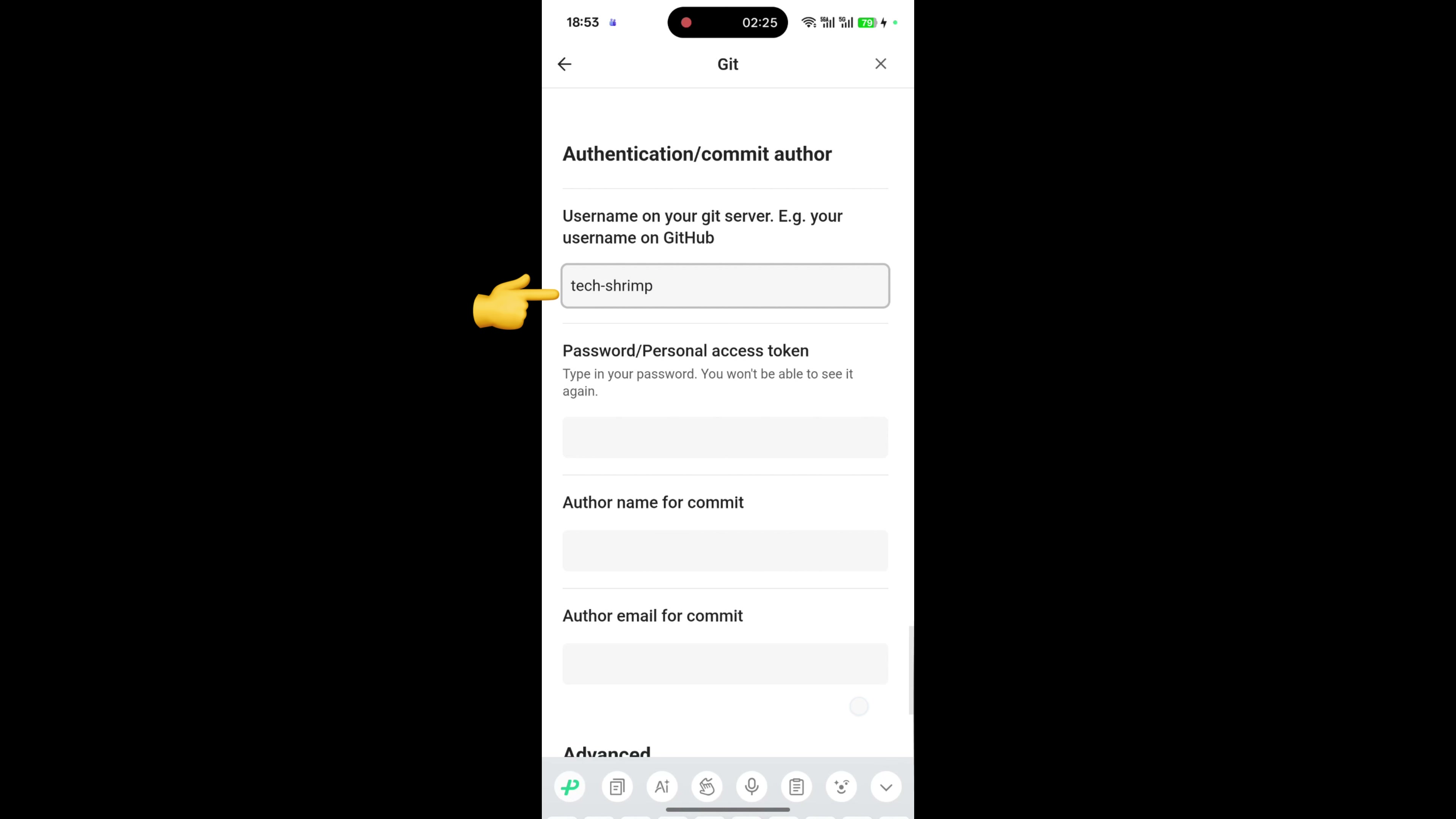 这里需要填写我们在 GitHub 上面的英文名字,我的英文名字是 tech-shrimp 。