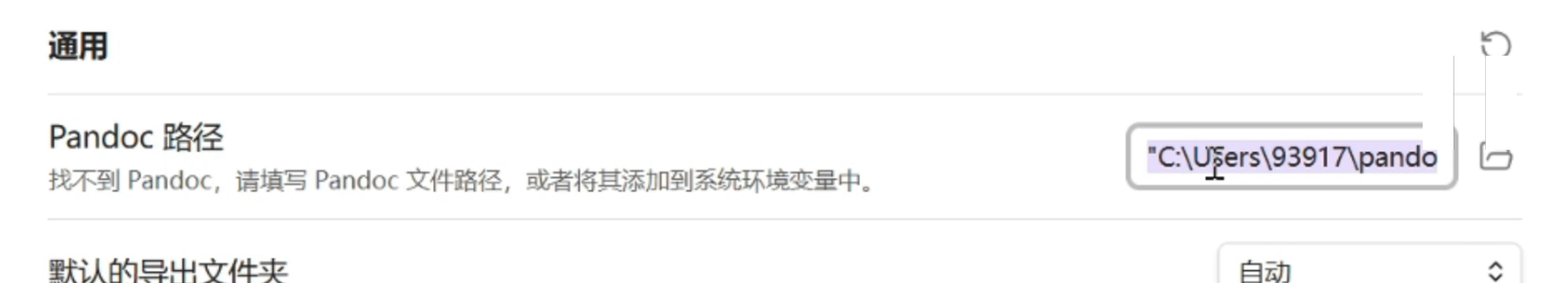 然后把里面的可执行程序解压到电脑的一个目录下面。然后我们来到插件的设置页面,在 Pandoc 路径这里,把刚才复制的地址粘贴过来。
