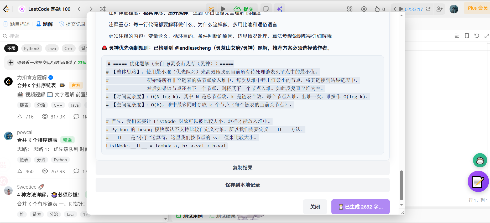刷题卡壳最崩溃的就是不知道问谁,切出去问 AI 还得来回贴代码,思路瞬间打断。点击答疑模式直接召唤代码私教。不用离开当前页面,它会顺着你写的源码找 bug ,讲透刚好卡住的那个点,再给一段能直接跑通的参考代码。哪里不会点哪里,主打陪伴式通关。