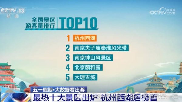 导读:据央视新闻,4月29日零时至5月1日16时,全国景区游客量排前十的景区名单出炉,杭州西湖游客量居榜首。