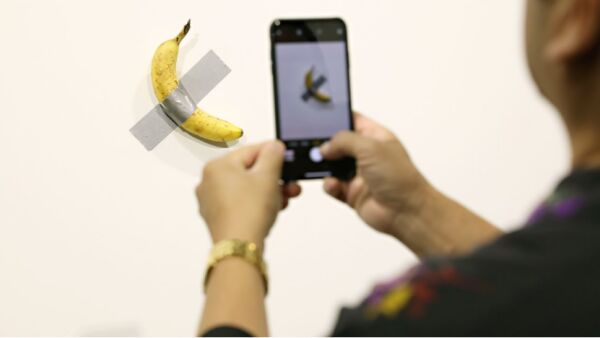 他可能以为这是美术馆提供给游客的免费小吃,而这份贴在墙上的“免费小吃”,其实是意大利艺术家毛里奇奥·卡特兰的重要作品之一,名叫《喜剧演员》,曾以12万美元天价拍出。会方解释道,香蕉是全球贸易的象征,是在表达一种讽喻。