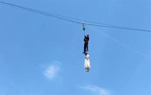 救援被挂半空的女演员(图源 :猛犸新闻)